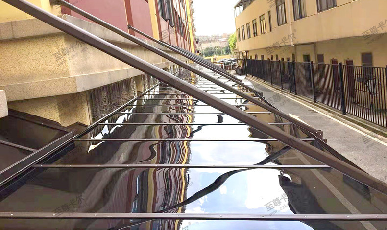 車庫玻璃雨棚效果圖?車庫入口玻璃雨棚報價?地下車庫大家在熟悉不過了,車庫都是建立在地下的,通過一個斜坡進出,里面本身就是一個陰暗的地方,當車輛開到出入口的位置